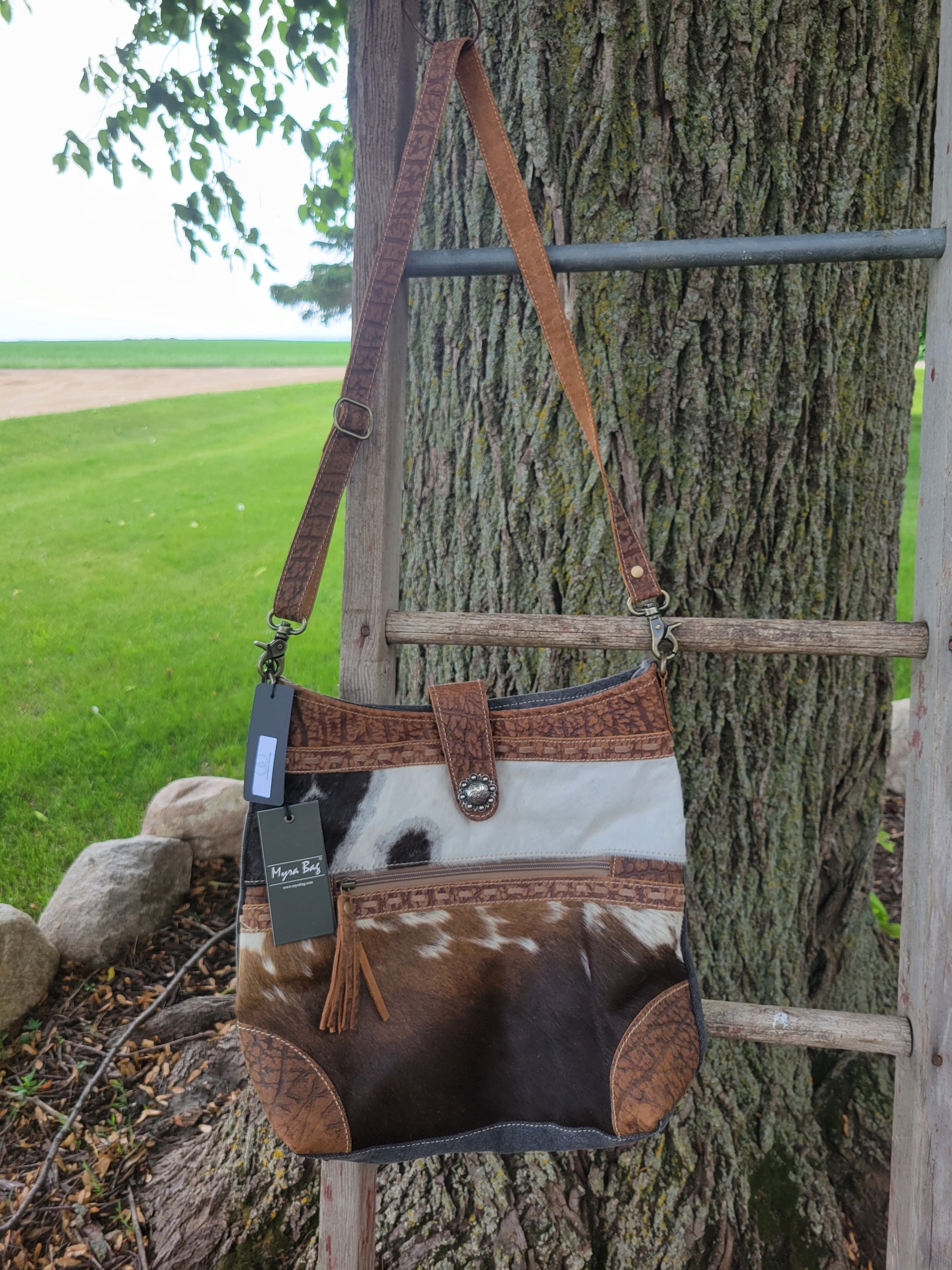 Shoulder bag. Zippered closure with zippered pockets on the front and back.